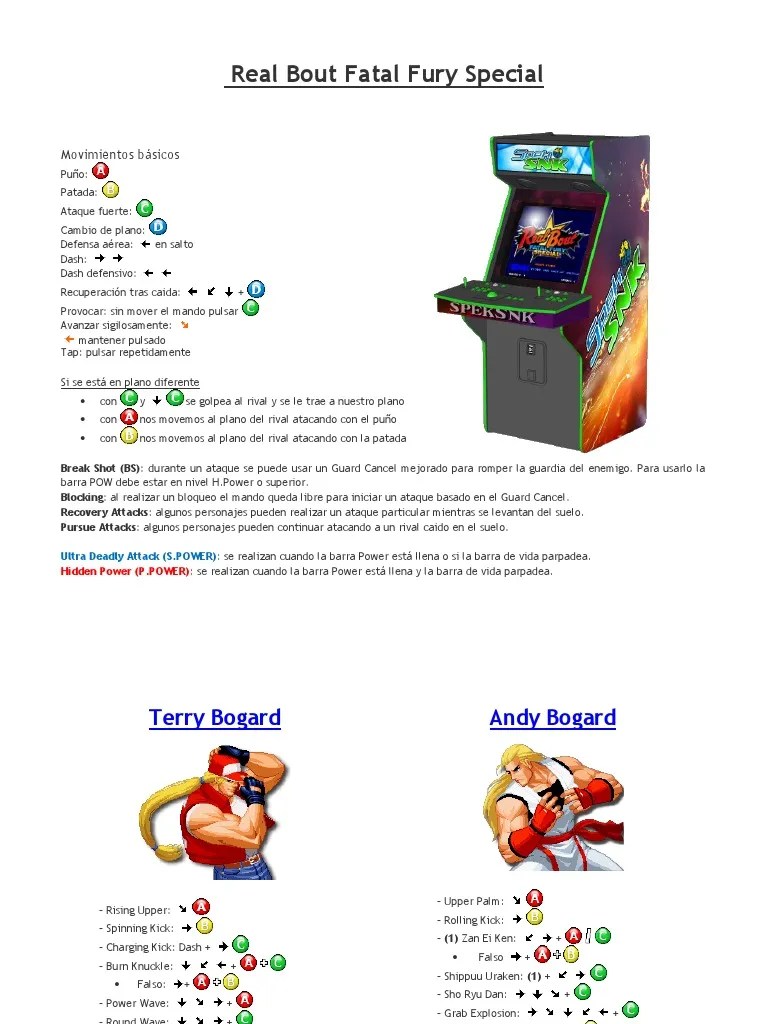 Fatal Fury 2 Neo Geo Guia De Movimientos
